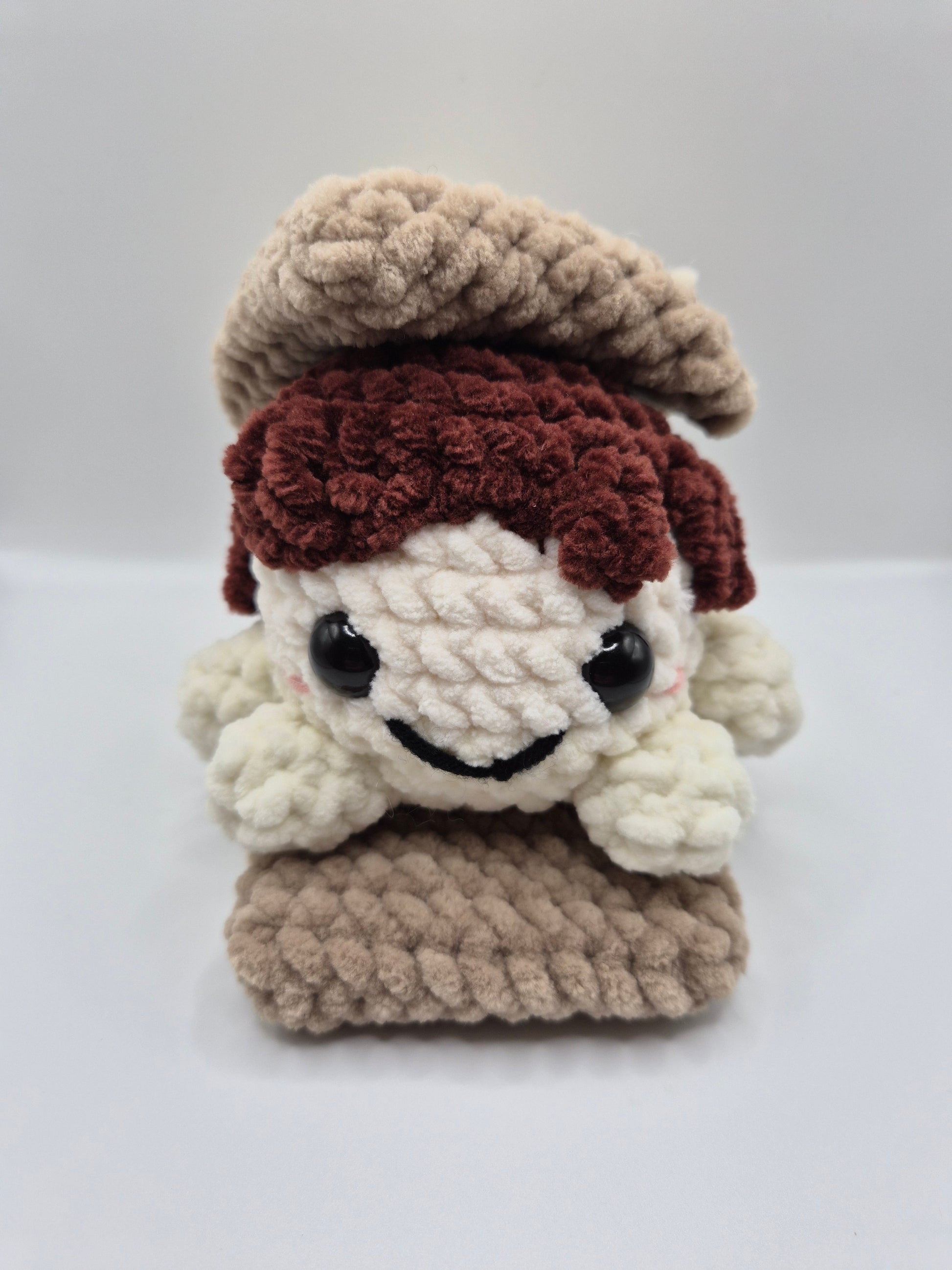 Hand crocheted and stuffed. Dimensions: 4.75” x 3.75” x 4.5”